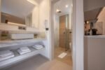 These rooms designed with open-concept living area are very bright and spacious – they are available with either double or queen beds. Room sizes are different – from 30 to 35 sqm. The interior is made with a warm-palette tons of walls and furniture. A work desk and stationary set are at your disposal. Makeup mirror and chair are also included.